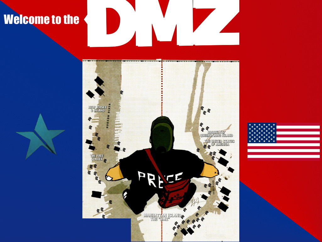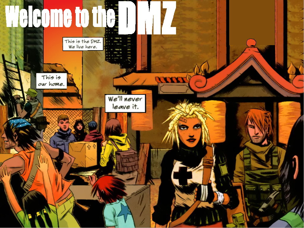 Zee Hernadez + Textboxen (die mussten unbedingt rein!!), in diesen Bild ist das chaotisch-schöne Leben in der DMZ am besten ausgedrückt, musste einfach versuchen ein Wallpaper draus zu machen.
